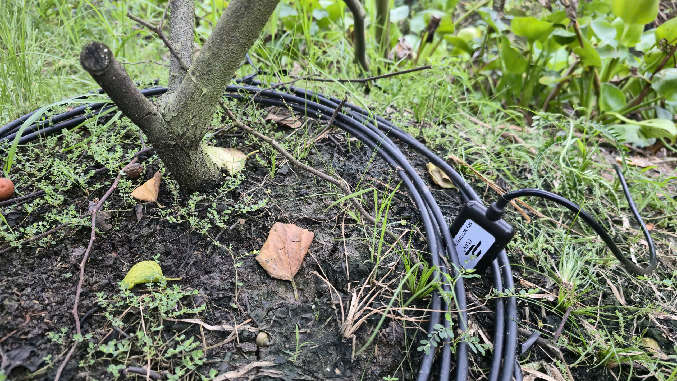 Các cảm biến được lắp trực tiếp trong vườn táo, kết nối thời gian thực với tủ điều khiển, cho phép hệ thống tự động bật – tắt tưới dựa trên điều kiện thực tế của cây trồng.